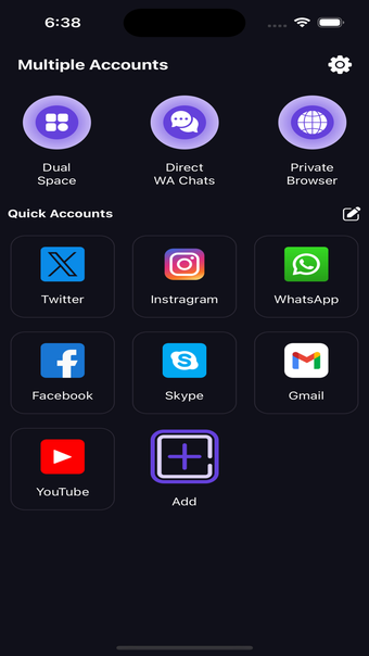 Multiple Accounts: Dual Space adalah aplikasi yang memungkinkan pengguna untuk mengelola beberapa akun dari aplikasi sosial dan komunikasi secara bersamaan di satu perangkat. Dengan fitur ini, pengguna dapat dengan mudah memisahkan akun pribadi dan profesional, menjadikannya ideal untuk mereka yang ingin menjaga keseimbangan antara kehidupan kerja dan pribadi. Pengguna dapat menggunakan dua akun WhatsApp, Instagram, atau Facebook secara bersamaan tanpa khawatir data satu akun akan mengganggu akun lainnya.